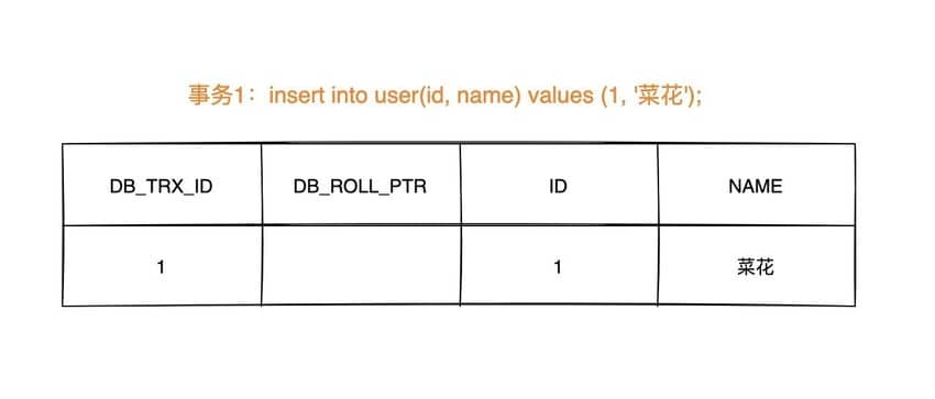 DB_TRX_ID为 1,满足 1 < m_up_limit_id,可见,所以事务 103 查询到数据为name = 菜花